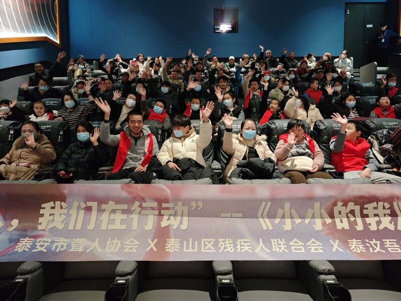 鲁网1月10日讯 1月10日下午,山东省泰安市新城控股旗下泰汶吾悦广场——泰安保利影城被温情笼罩,一场特殊的百人观影活动在此热烈开启。现场观众席上,坐满了来自不同领域的残障人士,听障人士用手语交流着期待,肢残人士在家人或志愿者协助下安稳就座,他们共同将目光聚焦于一部名为《小小的我》的影片。