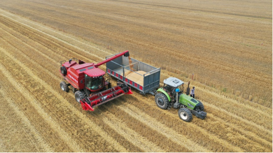2024年6月,潍坊昌邑市柳曈镇青阜农业综合体3万亩盐碱地小麦开机收割。在三台联合收割机的来回穿梭中,麦浪翻滚,小麦收割、麦秆打捆,整个过程有条不紊,一气呵成。收割完毕后,经过测算,亩产高达600公斤以上,高于昌邑地区普通地块平均亩产20%以上,创造了当地盐碱地上的小麦高产记录。