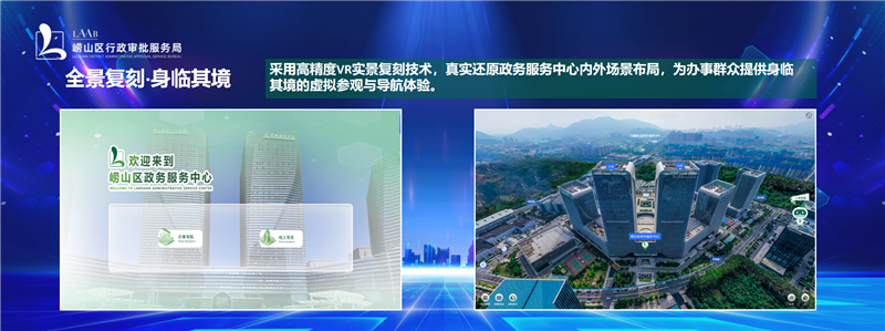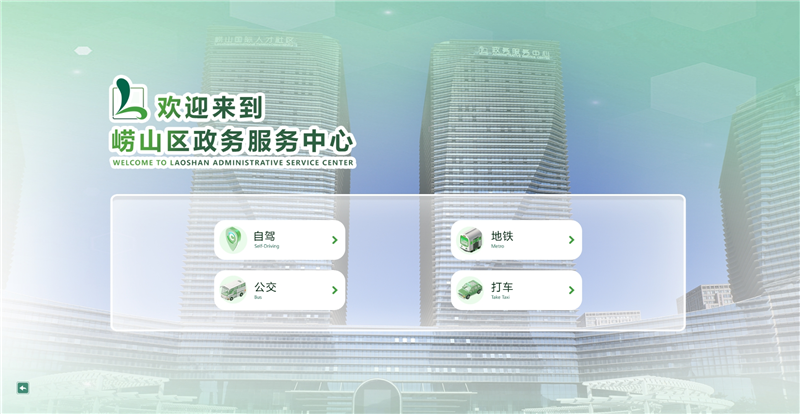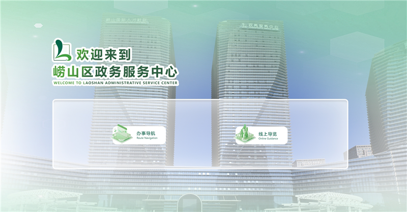 据了解,“虚拟大厅”集成全景式导办、数字播报、场景漫游、路线指引、政务资讯、政务问答等多项功能于一体,主要分为办事导航和线上导览两个版块,通过实景复刻技术,真实还原崂山区政务服务中心内外场景布局,为群众提供身临其境的虚拟参观与导航体验。“虚拟大厅”支持移动手机端及PC电脑端访问,群众可通过“崂山政务服务”微信公众号,或者扫描“虚拟大厅”二维码即可随时随地体验沉浸式贴心服务。