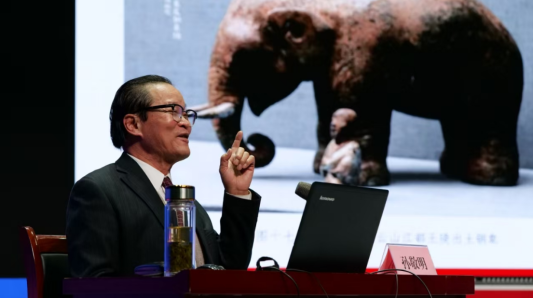 孙敬明表示,大象文化的历史极其渊源。苏北鲁南大汶口文化部族首领的大墓中出土象牙雕筒,有的镶嵌绿松石,极尽华美,有学者认为其是通天地之法器,与良渚文化玉琮功用相似。在商代甲骨文中,就多有猎获大象的记载,如帝乙、帝辛时一片卜辞记载商王一次猎获大象七头;安阳殷墟发现两个象坑,一为大象,一为小象,小象脖颈带有青铜铃铛,《吕氏春秋》称:“商人服象,为虐于东夷。”考古证明中原地区商代还有象群。商代大象用于服役、劳作、战争、礼仪、祭祀,在社会活动中具有重要地位。商周青铜器则有形象的象尊。