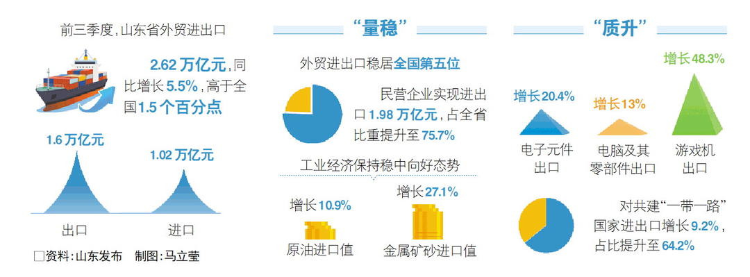 前三季度山东外贸进出口2.62万亿元,抗风险能力增强