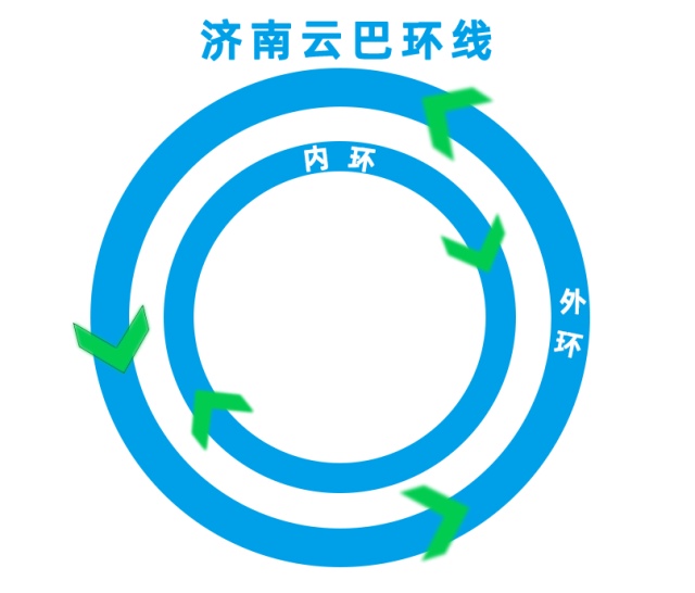内环——沿环线顺时针行驶,外环——沿环线逆时针行驶。大家乘坐济南云巴时,可通过乘客信息显示屏及标识标贴快速选对乘车方向。