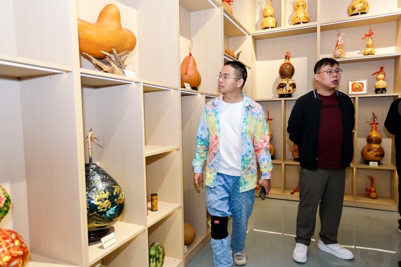 葫芦在传统文化中寓意吉祥,有着“福禄”的美好象征。网络名人一行怀着浓厚的兴趣走进东昌府区葫芦产业展示中心,一进展厅,琳琅满目的葫芦便映入眼帘。这里有浮雕葫芦、大漆葫芦、烙画葫芦、疙瘩葫芦等各类特色葫芦,总数达200余个,让人目不暇接。不仅如此,展厅内还专门设有两间研学教室,专业老师正在教室里针对葫芦种植及加工技术开展细致的培训,学员们听得全神贯注,现场学习氛围十分浓厚。堂邑镇种植葫芦的历史悠久,历经2000多年的历史积淀,葫芦种植已逐渐成为当地的一项特色产业,堂邑镇也凭借着优越的地理环境和丰富的种植经验,赢得了“千年古镇、葫芦之乡”的美誉。