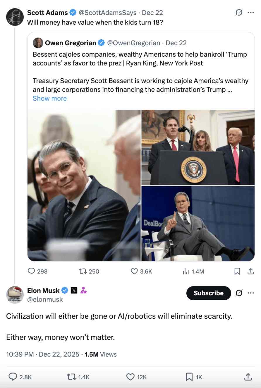 这场关于未来的争论,在“特朗普账户”(Trump Accounts)计划上达到了高潮。